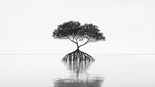Dit betoverende foto behang bevat een artistieke illustratie van een mangrove, gemaakt in zwart-wit, die de sereniteit en schoonheid van kustecosys...