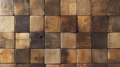 WonderMuralDeze foto behang heeft een uniek patroon van gesneden houten blokken, perfect het natuurlijke en rustieke uiterlijk van hout nabootsen. De tinten b...