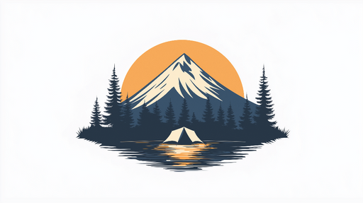 WonderMuralDit unieke Foto Behang heeft een strak en modern ontwerp, met majestueuze gestileerde bergen, een uitnodigende tent en een heldere zon, allemaal ge...