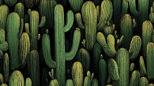 WonderMuralDeze foto behang combineert een patroon van weelderige cactussen die de warmte en authenticiteit van woestijnlandschappen oproept. De tinten diep g...