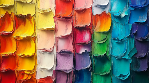 WonderMuralDeze betoverende foto behang bevat een assortiment van kleurrijke vierkanten geschilderd met een rijke textuur, variërend van pastelkleuren tot lev...