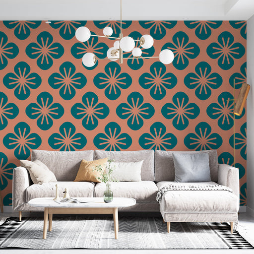 Alle gegevens bekijkenRetro bloemen Foto Behang | Groene en koraal patronen