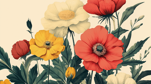 WonderMuralOntdek ons elegante bloemenfoto behang, met een assortiment van levendige bloemen zoals rode klaprozen, gele bloemen en delicate witte bloemen. De ...