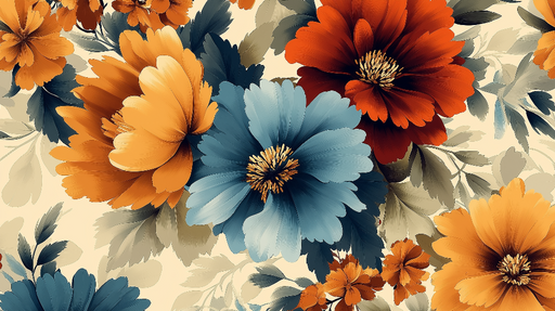 Alle gegevens bekijkenFoto Behang bloemen | Kleurrijke bloemenpatronen in tinten oranje en blauw