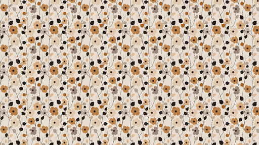WonderMuralOnze exclusieve foto behang toont een charmant patroon van pastel bloemen in warme tinten van beige, bruin en zwart, die delicaat uitkomen tegen ee...