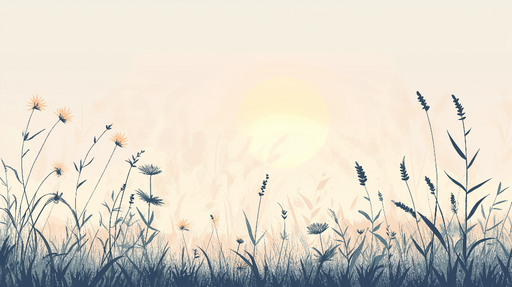 Foto Behang prairie | Zachte bloemen en delicate grassen bij zonsopgang