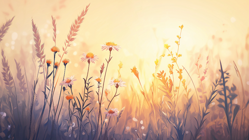 Foto Behang prairie | Zachte reflecties van wilde bloemen bij zonsondergang