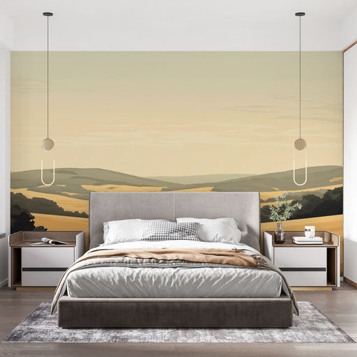 Dit foto behang roept een rustgevend prairielandschap op, met gouden tinten die doen denken aan tarwe die glinstert onder de zon. De glooiende heuv...