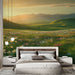 Dit foto behang roept een veld van wilde bloemen op, badend in het zachte licht van de zonsondergang. De uitgestrekte groene vlaktes zijn bezaaid met veelkleurige bloemen, variërend van wit tot paars, wat een levendig en rustgevend tafereel creëert. De zachte valleien en bergen op de achtergrond voegen een natuurlijke dimensie toe die sereniteit uitnodigt.