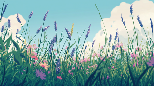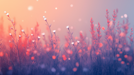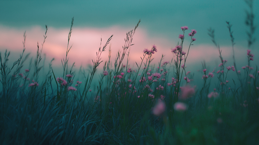 Alle gegevens bekijkenFoto Behang prairie | Delicate bloemen en zachte grassen onder een pastelkleurige lucht