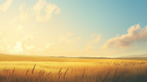 WonderMuralDit foto behang roept een landschap op van gouden prairie, waar tarwevelden majestueus staan onder een heldere en stralende hemel. De warme tinten ...
