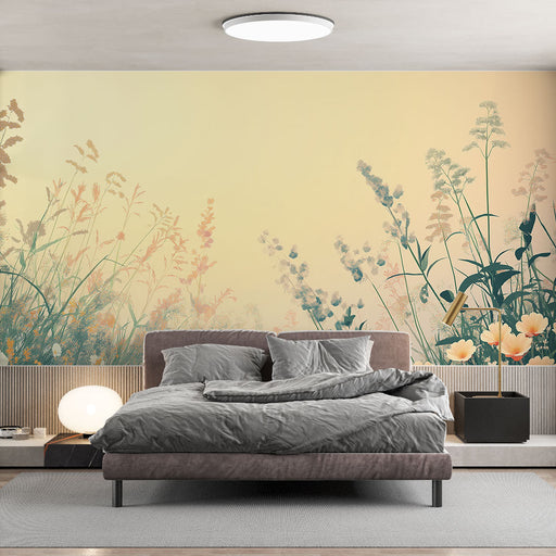 WonderMuralOntdek ons prachtige foto behang met prairie patronen, met delicate bloemen en sierlijke grassen die zich uitstrekken naar een pastelgekleurde heme...