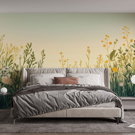 WonderMuralOntdek ons Foto Behang geïnspireerd door weiden, met een zonnig landschap gevuld met kleurrijke wilde bloemen en weelderige grassen. Zachte tinten ...