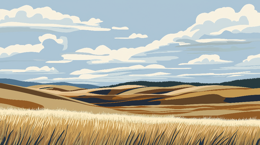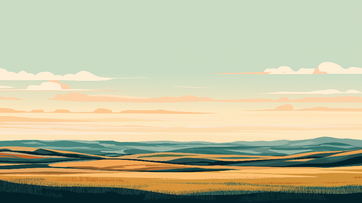 WonderMuralDit foto behang roept een vredig prairielandschap op, met zachte glooiingen van velden in oker-, groen- en bruintinten. De delicate nuances mengen ...