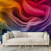 Deze foto behang heeft een fascinerende draaikolk van levendige kleuren, variërend van heldergeel tot diepblauw met tinten rood en paars. De subtiele bochten en golven creëren een gevoel van vloeibaarheid en beweging, waardoor zijden sluiers die in de wind bewegen worden opgeroepen. Dit ontwerp is zowel modern als artistiek, perfect om een dynamische en elegante touch aan uw interieur te geven.