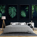 Ontdek ons prachtige foto behang geïnspireerd door de natuur, perfect om een tropisch tintje aan je interieur te geven. Dit ontwerp bevat een reeks illustraties van groene bladeren op een donkere achtergrond, wat een elegant en modern contrast creëert. De verfijnde details van de bladeren roepen een rustgevende en weelderige sfeer op, waardoor een gevoel van sereniteit in je ruimte ontstaat.
