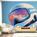 Dit boeiende foto behang toont een gestileerde skihelm met nauwkeurige details, met een spiegel die met sneeuw bedekte bergen weerspiegelt. De zachte kleuren van de lucht en landschappen creëren een vredige en dynamische sfeer, ideaal voor wintersport- en natuurliefhebbers.