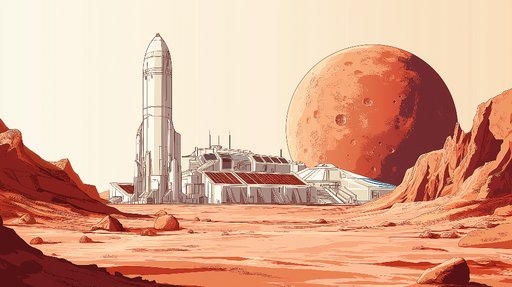 WonderMuralOntdek ons fascinerende foto behang met een futuristische ruimtebasis op de planeet Mars. De boeiende illustratie toont een majestueus ruimteschip ...