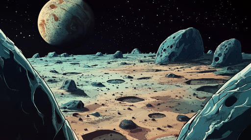 Alle gegevens bekijkenFoto Behang universum | Lunar landschap met een grote satelliet in een sterrenhemel