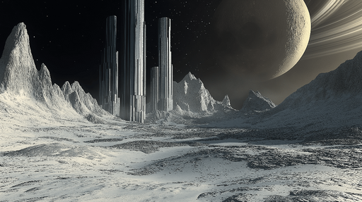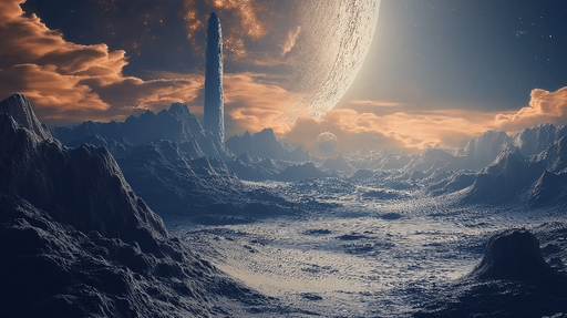 Alle gegevens bekijkenFoto Behang universum | Futuristisch maanlandschap met monumentale structuren
