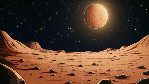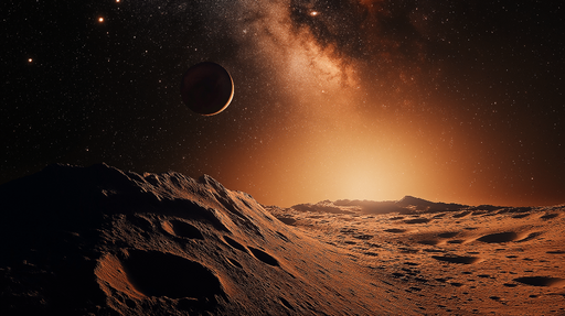 Alle gegevens bekijkenFoto Behang universum | Lunas landschap met uitzicht op een rode planeet