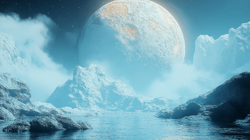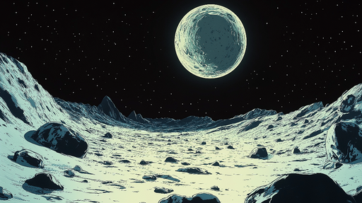 WonderMuralOntdek ons foto behang dat een fascinerend maanlandschap illustreert, badend in het licht van een grote heldere maan. De zachte tinten blauw en gri...