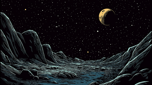 WonderMuralDit foto behang dompelt de toeschouwer onder in een fascinerend maanlandschap, waar grijze bergen oprijzen onder een nachtelijke hemel bezaaid met ...