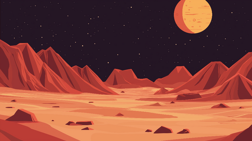 WonderMuralDit foto behang onthult een spectaculair Martiaans landschap, waar bergen met heldere rode tinten verschijnen onder een sterrenhemel. Het woestijno...