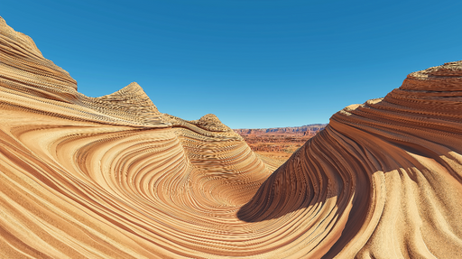 WonderMuralOntdek ons foto behang met een boeiend dor landschap, waar golven van rotsen gevormd door de tijd een uniek patroon creëren. De beige en okerkleuri...