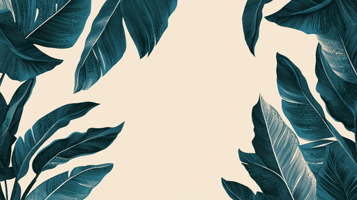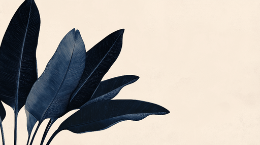 WonderMuralDit foto behang biedt een elegant contrast tussen een zachte beige en tropische bladpatronen in diepblauw. De grote, artistiek getekende bladeren c...