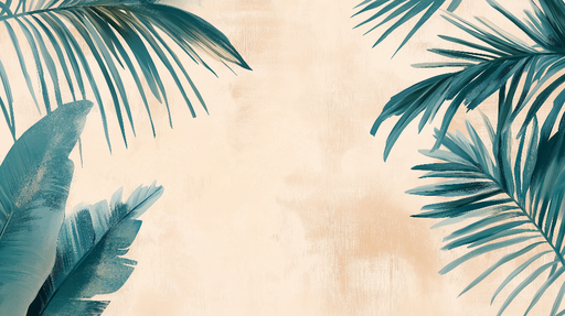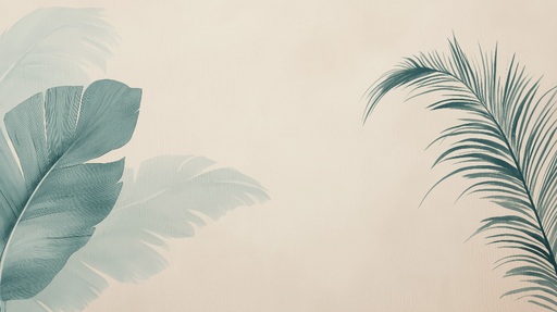 WonderMuralDit boeiende fotobehang heeft een set van tropische bladeren in turquoise, wat een verfrissende en warme sfeer biedt. De beige achtergrond voegt ee...