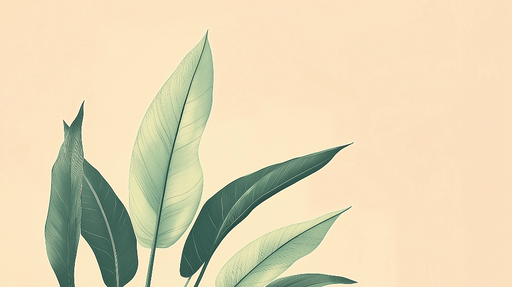 WonderMuralDit foto behang benadrukt een modern ontwerp met grote tropische bladeren op een zachte beige achtergrond. De bladeren, in verschillende tinten, br...