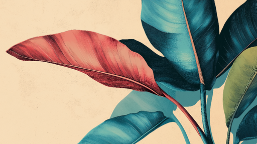 WonderMuralDit foto behang bevat een gestileerd tropisch blad in tinten van diep groen en subtiel rood op een zachte beige achtergrond. Het elegante en modern...