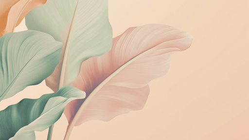 WonderMuralDit unieke foto behang heeft een grote tropische blad op een achtergrond met verschillende pastelkleuren, waarbij tinten van beige, zacht groen en ...