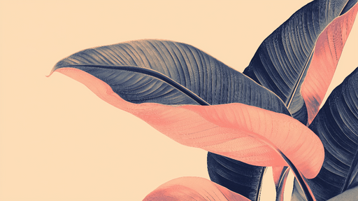 WonderMuralDit beige foto behang heeft een elegant ontwerp van grote gestileerde bladeren die opvallen tegen een zachte achtergrond. De tinten beige en roze c...