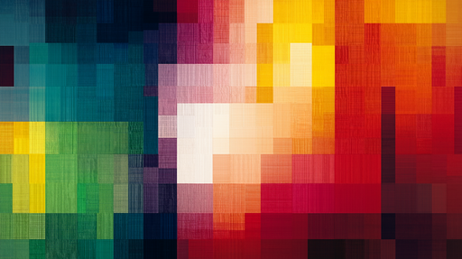 WonderMuralDeze foto behang heeft een boeiend abstract ontwerp, bestaande uit kleurblokken in levendige harmonieën variërend van groen tot rood, inclusief gee...