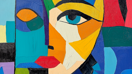 WonderMuralOntdek ons Foto Behang met een abstract portret met levendige kleuren en gedurfde geometrische vormen. De rijke texturen en gevarieerde tinten, var...