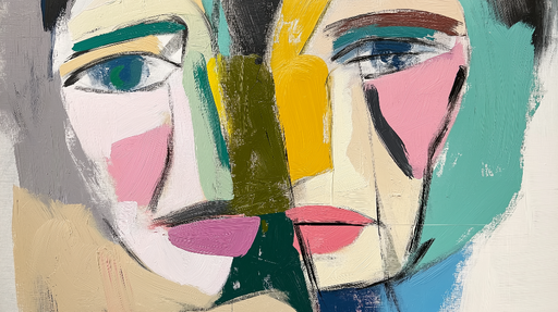 WonderMuralDeze foto behang heeft een prachtig abstract patroon van gestileerde gezichten, met een palet van intense kleuren die samensmelten met geometrische...