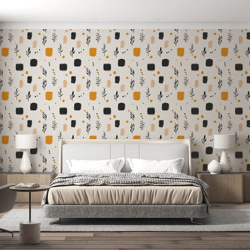 Alle gegevens bekijkenFoto Behang bladeren | Geometrische patronen in oranje, zwart en crème