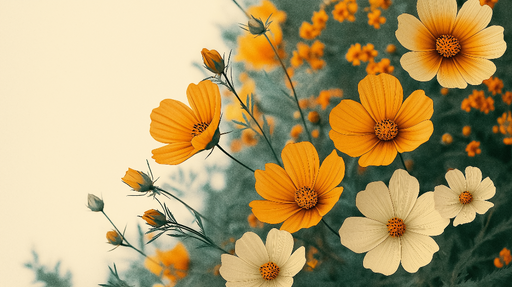 WonderMuralDeze aantrekkelijke foto behang benadrukt een prachtig patroon van gele en witte bloemen, waardoor een zachte zomerse sfeer ontstaat. De bloemen me...