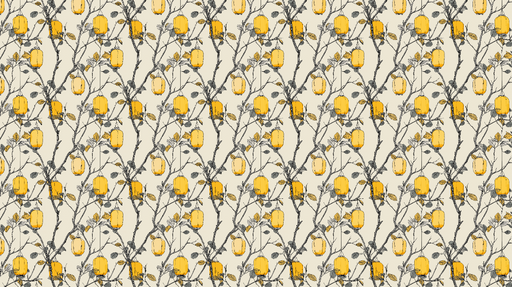 Alle gegevens bekijkenBloemig geel Foto Behang | Takmotief met gele lantaarns en delicate bladeren