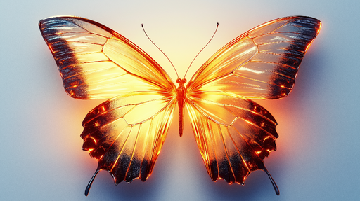 WonderMuralDeze spectaculaire foto behang benadrukt een heldere vlinder met doorschijnende vleugels, gebaad in een intense gloed van oranje en geel, waardoor ...