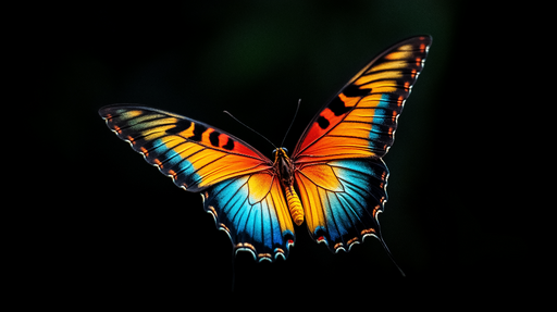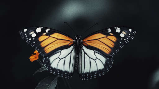 Alle gegevens bekijkenFoto Behang vlinder | Elegant patroon van een contrasterende vlinder op een donkere achtergrond
