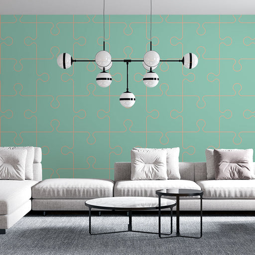 Studio SamaDeze foto behang puzzelpatroon is ideaal voor het creëren van een speelse en originele sfeer in uw ruimte. Met zijn pastel mintgroene tinten en zac...