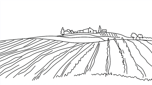 WonderMuralDeze foto behang toont een delicate illustratie van een wijngaardlandschap, waarbij de elegantie van de wijnstokken en omliggende heuvels wordt vas...
