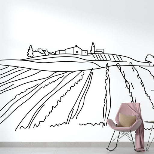 Alle gegevens bekijkenFoto Behang landelijke landschap | Elegante lineaire tekening van heuvels en huizen
