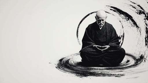 WonderMuralDeze fascinerende Foto Behang toont een minimalistische en krachtige illustratie van een monnik in meditatie, omhuld in een dramatische spiraal van...