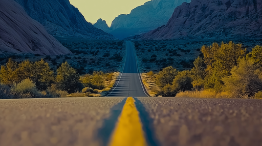 Deze foto behang toont een verlaten weg die zich uitstrekt tot in het oneindige, waarbij de essentie van eenzaamheid en avontuur wordt vastgelegd. ...