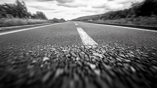 Ontdek ons foto behang geïnspireerd door een bestrate weg, dat een dynamisch en modern perspectief biedt. Dit zwart-witte ontwerp vangt de korrelig...