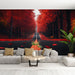 Deze foto behang roept een boeiend herfstlandschap op met een weg omringd door bomen met levendig rood blad. Elke blad dat zachtjes op het wegdek valt, creëert een warme en uitnodigende sfeer, ideaal om een vleugje natuur in je interieur te brengen.